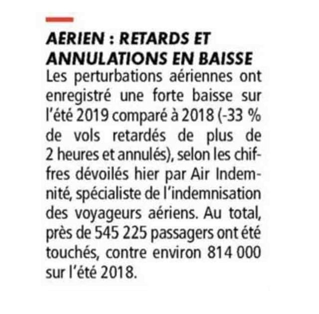Septembre 2019 : Le Parisien/Aujourd'hui en France : Du mieux dans le ciel cet été...
